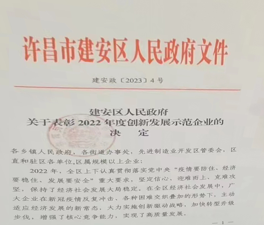 賀:我司被建安區政府選入2022年度創新發展示范企業